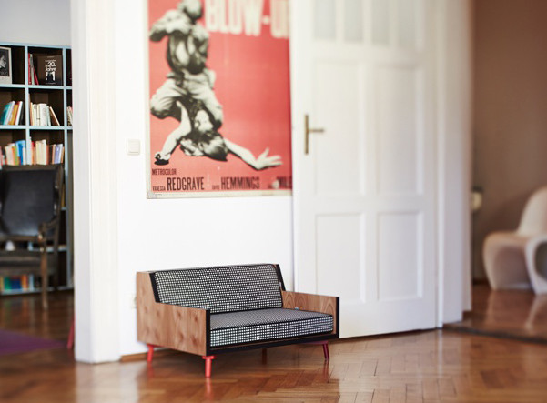 Con una construcción de madera contrachapada doblada y tapicería con una tela de los Eames, esta encantadora cama para perro de CANOPYstudio es una delicia para cualquier entusiasta moderno de mediados de siglo.