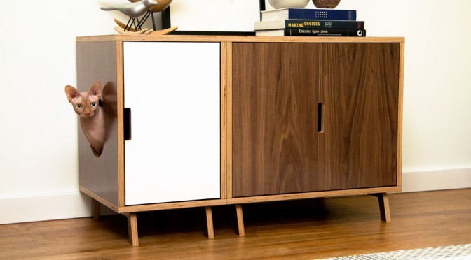 Esta pieza de Modernistcat puede parecer una credenza con estilo, pero en realidad es una ingeniosa cama/camada para gatos disfrazada!