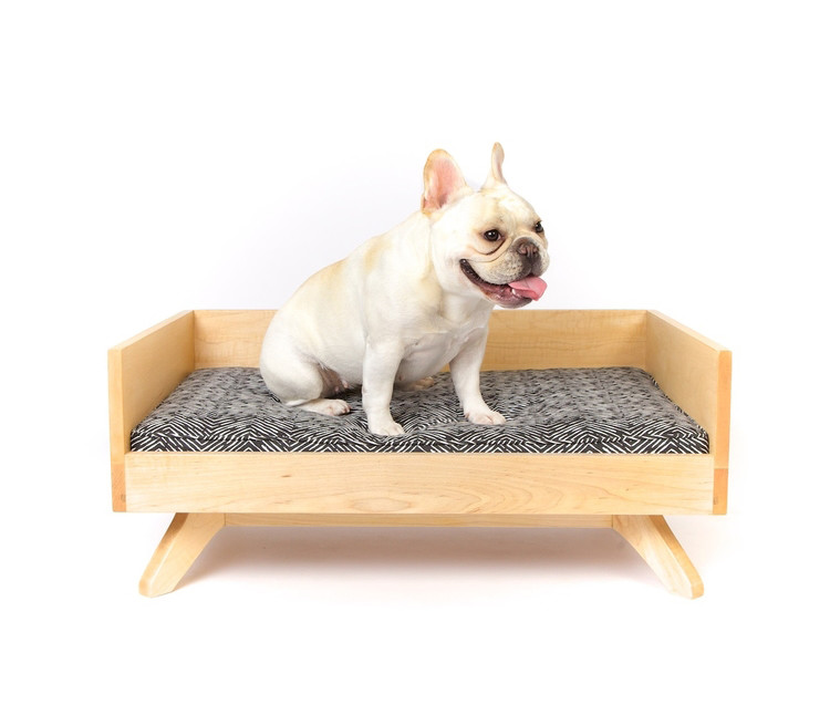 La cama Joey de Pup & Kit presenta una construcción de madera sólida, hecha a mano por artesanos locales en Toronto.
