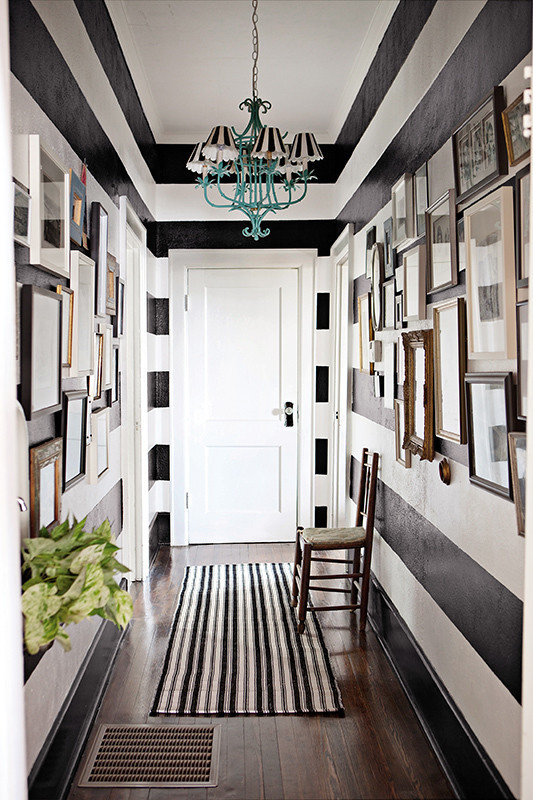 Pasillo de rayas blancas y negras