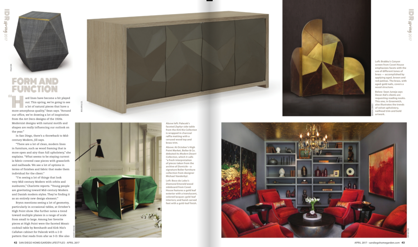 «Las líneas duras se han vuelto un poco juguetonas. Esta primavera, vamos a ver muchas piezas naturales que tienen una calidad más amorfa», dice Sean. «En nuestra oficina, nos estamos inspirando mucho en los diseños Art Deco de los años 20. Los diseños modernistas con motivos y formas naturales están influyendo mucho en nuestra perspectiva del año».