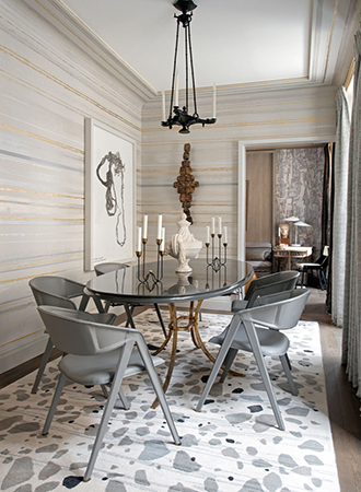 Al decorar un espacio, la mayoría de los diseñadores de interiores siempre sugieren empezar desde cero. Así que piensa en el suelo como un punto de partida fundamental y no seas tímido cuando se trata de la escala. Ve por una alfombra tan grande como sea posible para hacer realmente una gran declaración.