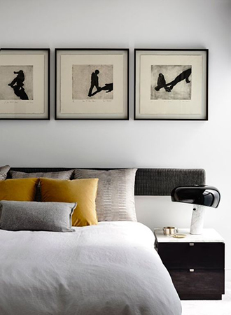 Cuando instales arte en tu casa, sigue el ejemplo de las galerías de arte moderno y cuelga las piezas para que estén perfectamente a la altura de los ojos para lograr el mejor tipo de impacto.