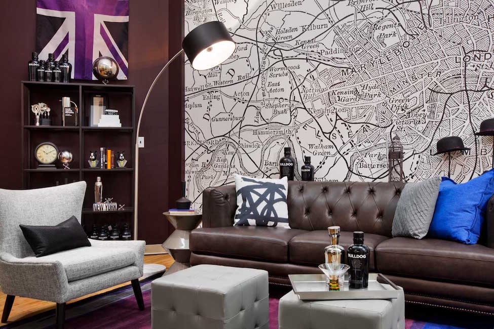 Piense en su vestíbulo como la introducción a su empresa. Si su empresa tiene una mascota, un tema o un color de firma, encuentre todas las formas posibles de incorporarlo en su esquema de diseño. Desde el vestíbulo frontal hasta la sala de juntas, colocamos insignias caninas en todas las oficinas de Bulldog Gin.
