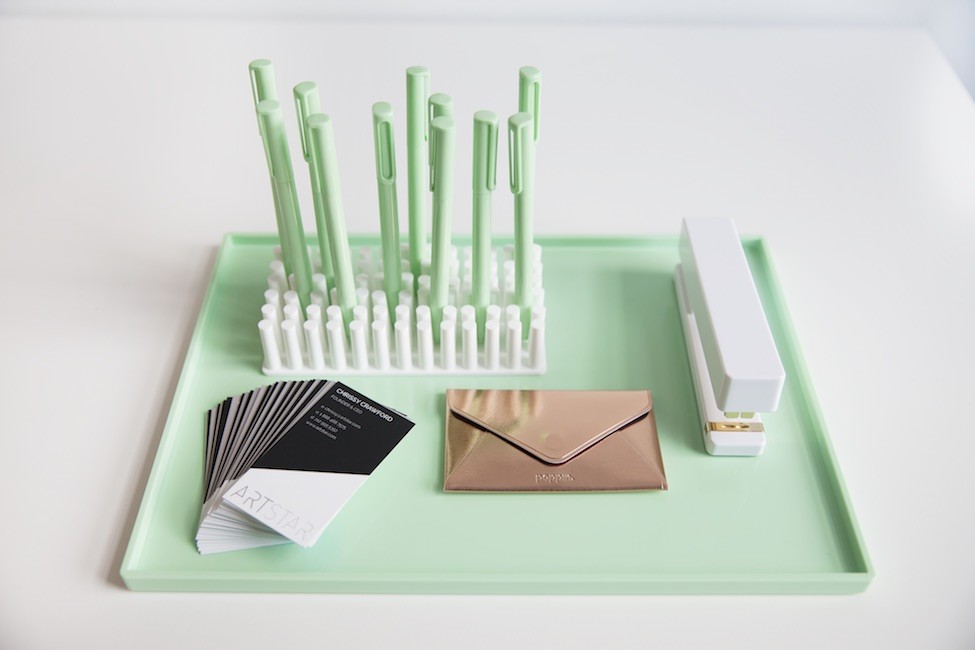 Quieres que el espacio de tu oficina tenga un aspecto limpio, nítido y organizado. Prepara a tus empleados para el éxito dándoles piezas de escritorio de organización y elegantes suplementos de oficina. Mira cómo lo hicimos para este inicio artístico.