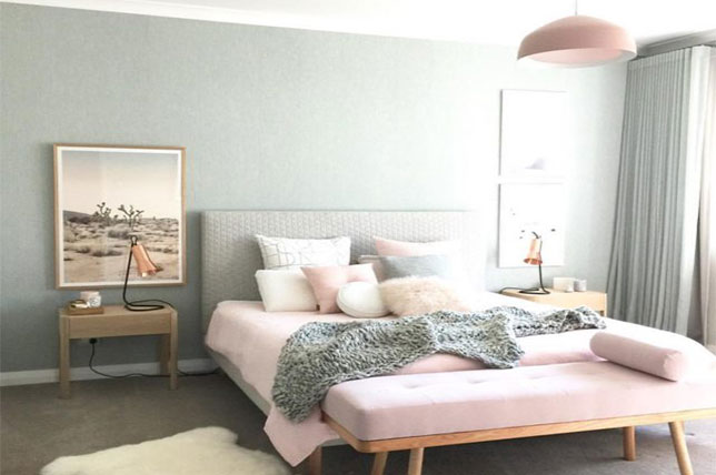 Varios tonos de gris son muy útiles para añadir neutralidad a un espacio que puede sentirse abrumado de otra manera. A pesar de sus factores elogiosos, 2018 verá más gente que opta por neutralizar un área con pasteles naturales en lugar de gris. Probar esta nueva tendencia es muy fácil, nuestros decoradores senior sugieren incorporar la tendencia a través de la decoración de acento o si está tratando de darle sabor a su casa, elija un pastel y pinte un techo de acento.