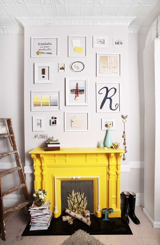 Objetos en la chimenea amarilla