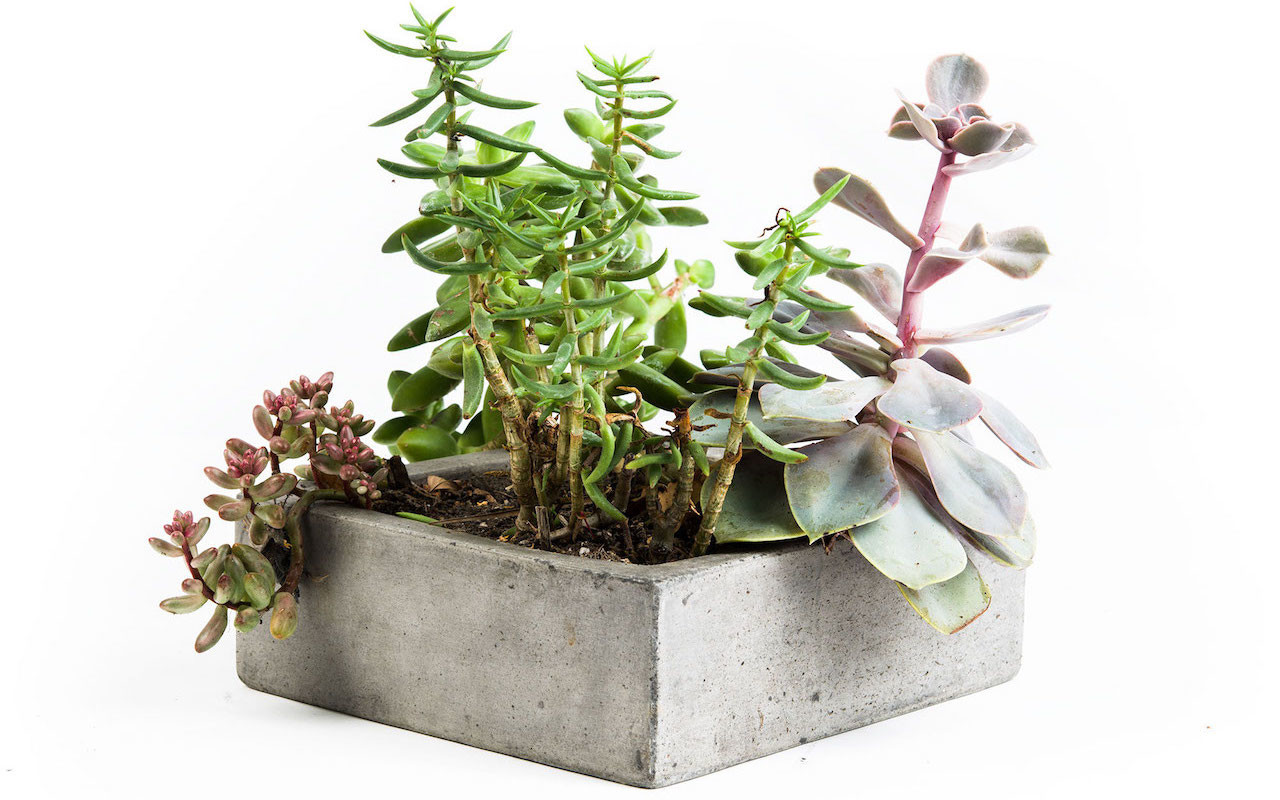 Estas angulares macetas hechas a mano se ven especialmente modernas cuando se las combina con suculentas y cactus. Grano, desde $28