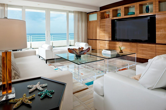 «Aunque una característica clave en la mayoría de mis proyectos de segunda residencia siempre será el uso de materiales naturales, a veces las mejores ideas de diseño de interiores de casas de vacaciones traen un sentido de elegancia probada y verdadera para lo inesperado – porque nadie espera ver una araña de cristal soplado a mano en la playa, pero ¿por qué no?»
