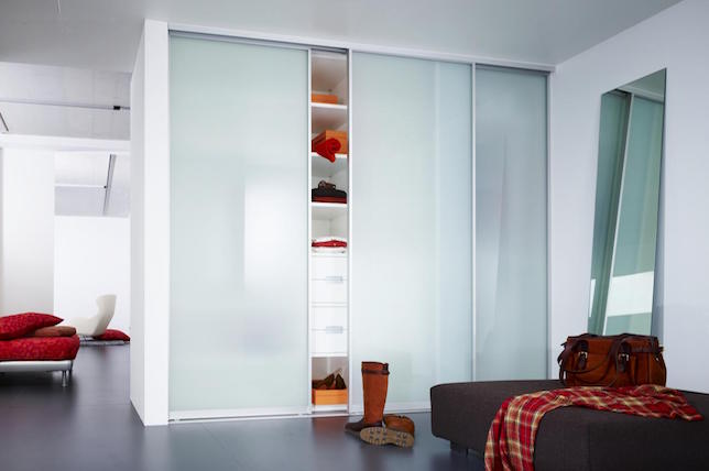 Las puertas de armario modernas hechas de vidrio pueden funcionar bien para habitaciones con un diseño contemporáneo. Las puertas de armario dobles de vidrio esmerilado son una opción popular para aquellos que prefieren ocultar los espacios de almacenamiento mientras crean un aspecto fresco en su dormitorio.