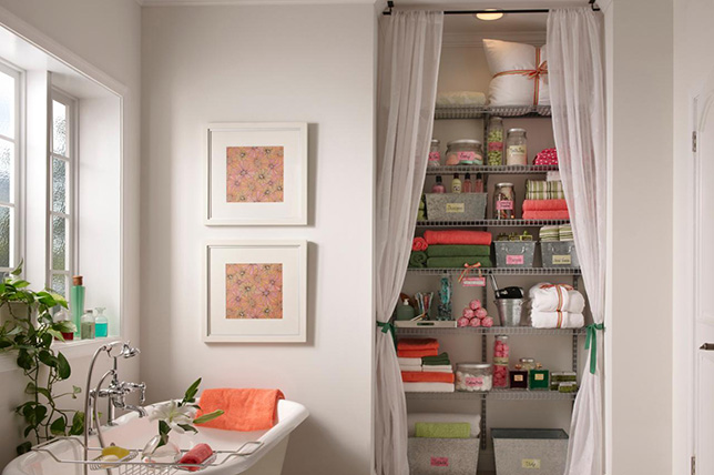 También puede optar por una tela más gruesa que podría ocultar su necesidad de almacenamiento. Esta idea es muy fácil de lograr. Sólo tienes que colgar una varilla en el armario y luego colocar una cortina a tu elección.