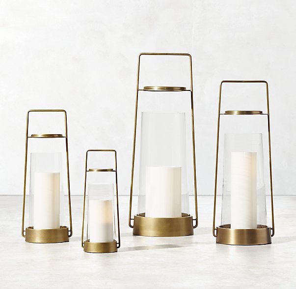Inspirado en las centenarias linternas de gas francesas utilizadas por los ingenieros de trenes, el diseñador Jonathan Browning creó estas elegantes versiones de latón que son lo suficientemente sofisticadas para usarlas en interiores o exteriores. Intenta agrupar diferentes tamaños para obtener un efecto más interesante visualmente.