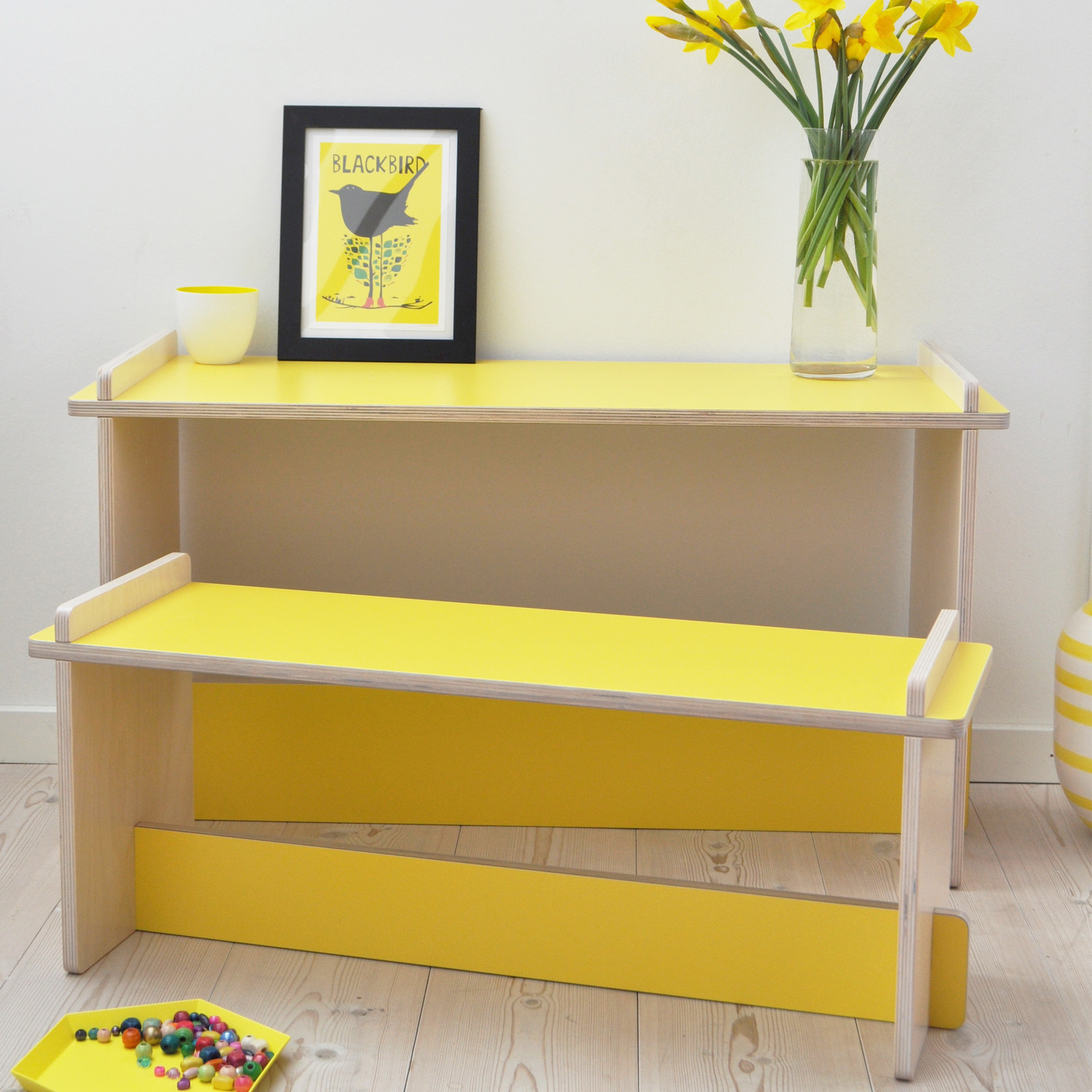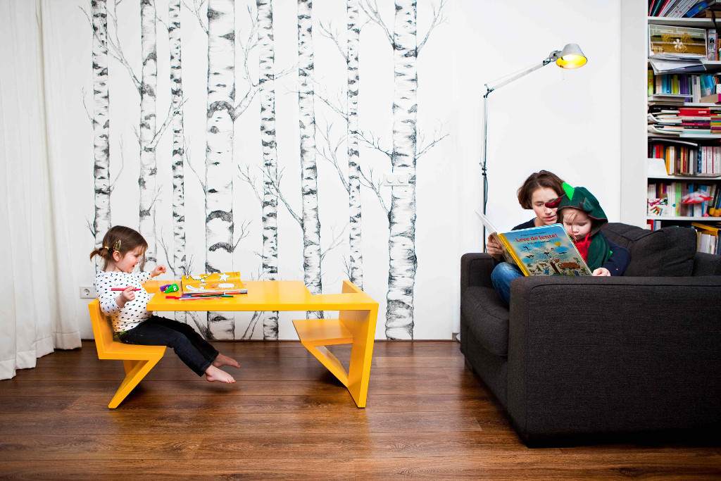 El escritorio «Link» de Small Design puede ser utilizado como un atractivo banco una vez que su hijo lo haya superado.