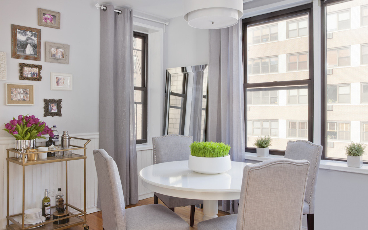 Da la vuelta: Si tu espacio es demasiado pequeño para una mesa de comedor rectangular, opta por una versión redonda como en el rediseño de nuestro apartamento de Nueva York. Bonus: Esta forma fomenta una sensación más íntima, por lo que no debería haber huecos en la conversación de la cena.