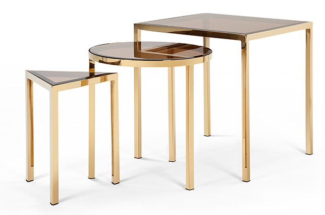 Las mesas anidadas con tapa de cristal son una forma inteligente de crear más espacio en la mesa cuando lo necesitas, mientras que las guardas cuando no. Esto funciona especialmente bien para las mesitas de noche y las mesillas de noche en un diseño de dormitorio más pequeño. Esto puede ser para materiales de lectura cuando estás trabajando, espacio para poner tu portátil o simplemente un poco de espacio extra.