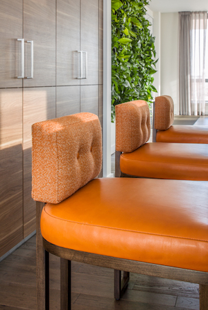 Si quieres derrochar en una pieza de acento para el hogar, considera un mueble hecho a medida. Las piezas hechas a medida se pueden moldear según las especificaciones exactas de tu casa, y te permiten mostrar tu estilo de diseño personal. En este ático de Central Park, hemos fabricado a medida estos taburetes con piel Edelman y telas de Pollack.