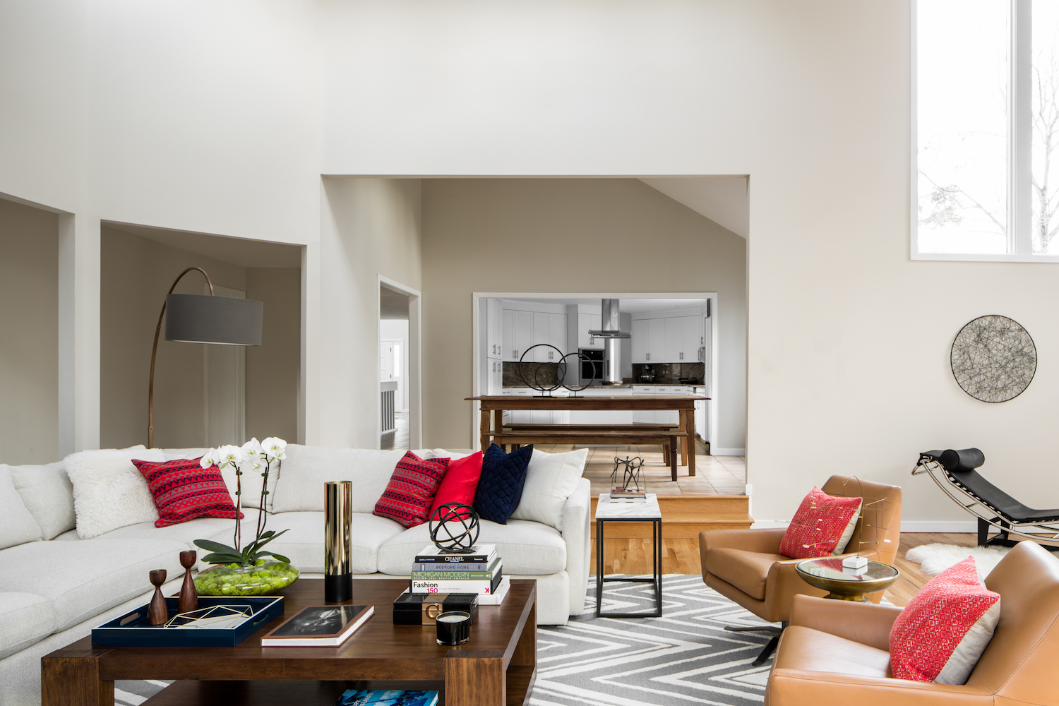 Nuestro cliente, que acababa de mudarse de Sudamérica a Nueva Inglaterra, contrató a Décor Aid para llevar un estilo moderno a una casa que compró en Stamford, CT.