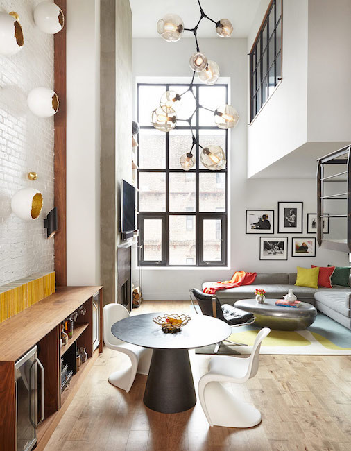 Si vives en Nueva York, es probable que no tengas mucho espacio en tu apartamento. Aunque la iluminación adecuada es una necesidad absoluta en cualquier habitación, no significa que tengas que sacrificar un espacio precioso en el suelo. Los dormitorios no requieren una gran cantidad de luz, por lo que realmente sólo necesitas lámparas en tu mesa auxiliar. Y si actualmente tienes una lámpara de pie, entonces considera reemplazarla por una lámpara colgante, como hicimos en este dúplex SoHo.