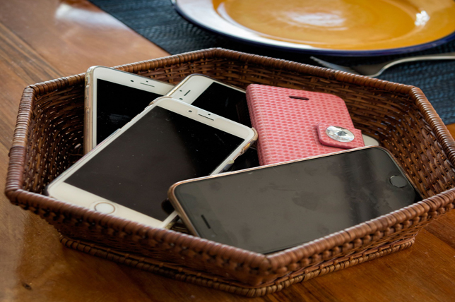 Para animar a los invitados a mezclarse y disfrutar de su tiempo en tu casa, nuestros diseñadores de interiores sugieren alojar una bandeja o una cesta para que los invitados guarden sus teléfonos y gadgets, para cuando llegue la hora de las fotos.