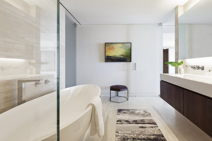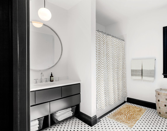 No tengas miedo de usar colores llamativos en tus paredes y techos, y ten en cuenta la iluminación al mejorar tu baño: uno de los mayores errores que puedes cometer es confiar en una sola fuente. Además, tómate tu tiempo al elegir tus accesorios -la cortina de la ducha, la papelera, etc.- y no rehuyas el arte: es inesperado, pero es otra gran manera de vestir el espacio íntimo.